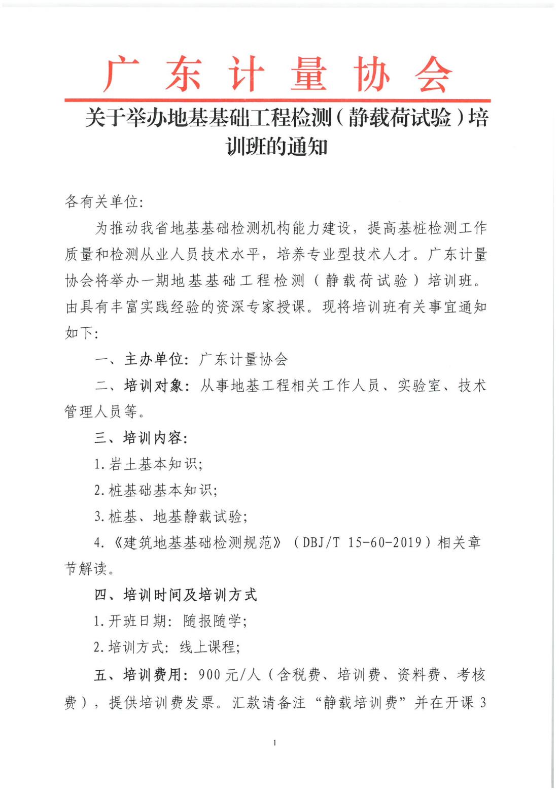 (長期)地基基礎工程檢測(靜載荷試驗)培訓班的通知